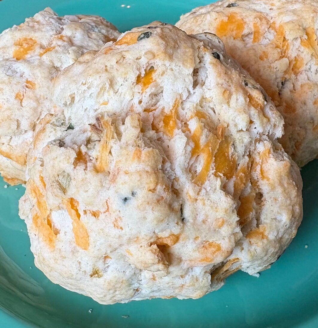 Cheddar Jalapeño Scone with Seasoned Egg Bake & Cheddar Cheese. GF, DF, and GF/DF